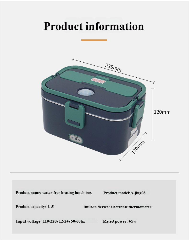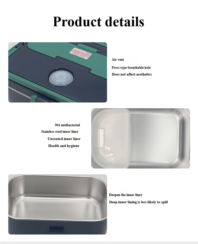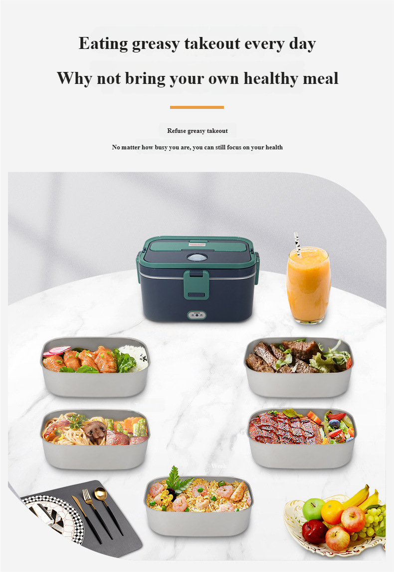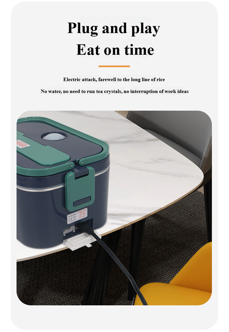 Unlike traditional steam-heated lunch boxes, this model features a dry heating system that requires no water addition. Simply plug in, heat your meal directly, and enjoy fresh, warm food within minutes.