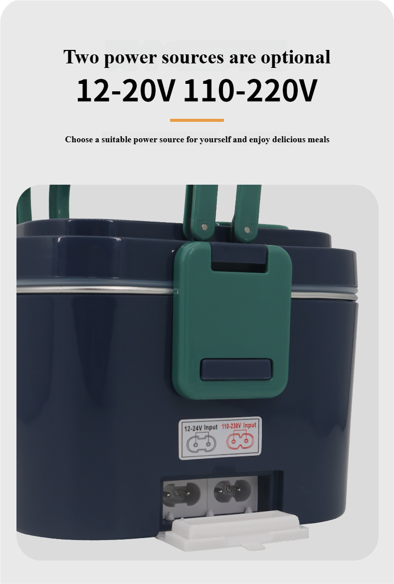 Enjoy hot meals anywhere! This electric lunch box supports both 12V/24V car sockets and 110V/220V home outlets, making it perfect for office workers, truck drivers, students, and travelers.